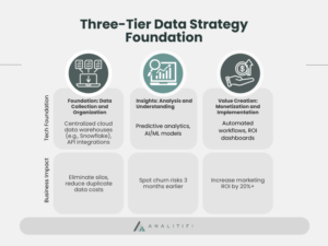 Having a solid data strategy isn’t just important for modern businesses, it’s absolutely essential for survival and growth in today’s digital economy. While the concept of leveraging data might seem overwhelming, it can be broken down into a simple three-tier approach that any organization can follow.